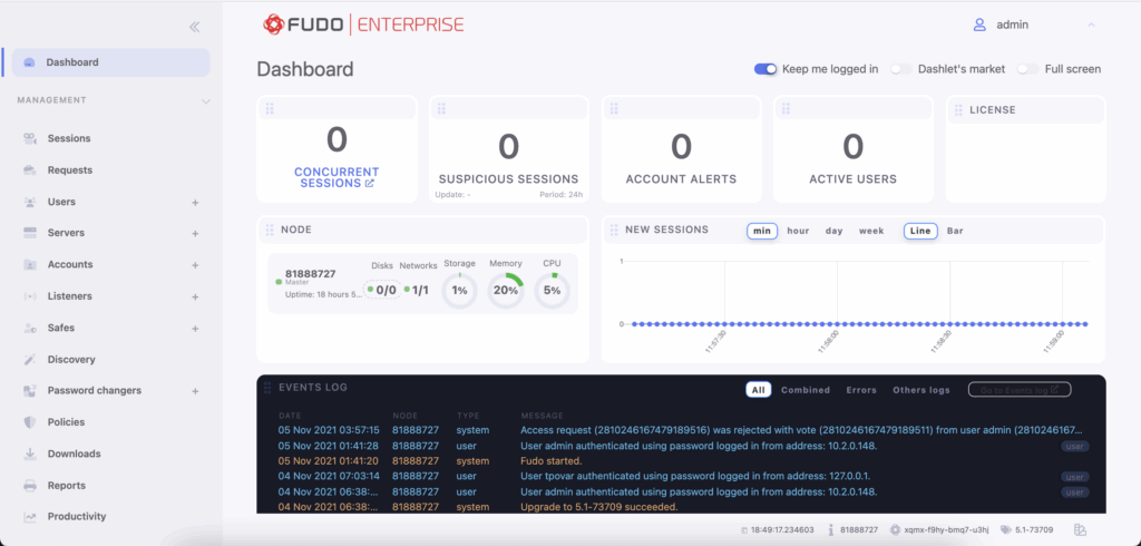 Fudo Enterprise kontroluje i zabezpiecza konta administratorów oraz użytkowników uprzywilejowanych. Dzięki temu organizacje utrzymują pełną kontrolę nad dostępem do krytycznych zasobów: