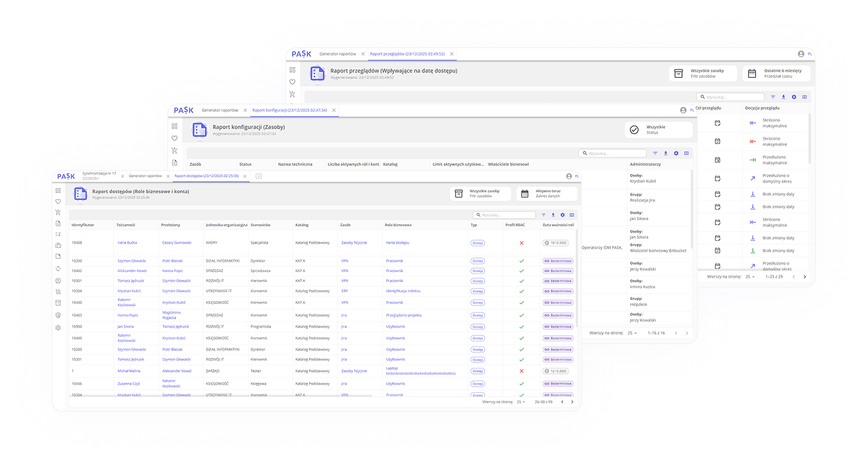 PASK.ID to nowoczesna platforma Identity & Access Management (IdM), która w pełni automatyzuje zarządzanie tożsamościami i uprawnieniami w organizacji. Dzięki centralizacji i automatyzacji procesów platforma znacznie ogranicza ryzyko błędów, eliminuje konta sierocze i zapewnia zgodność z regulacjami takimi jak NIS2, DORA, ISO 27001 i RODO.